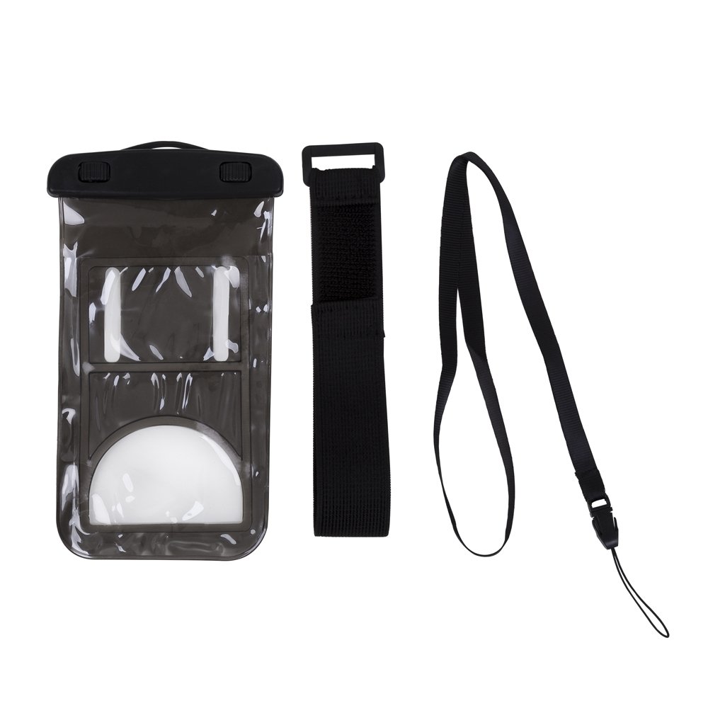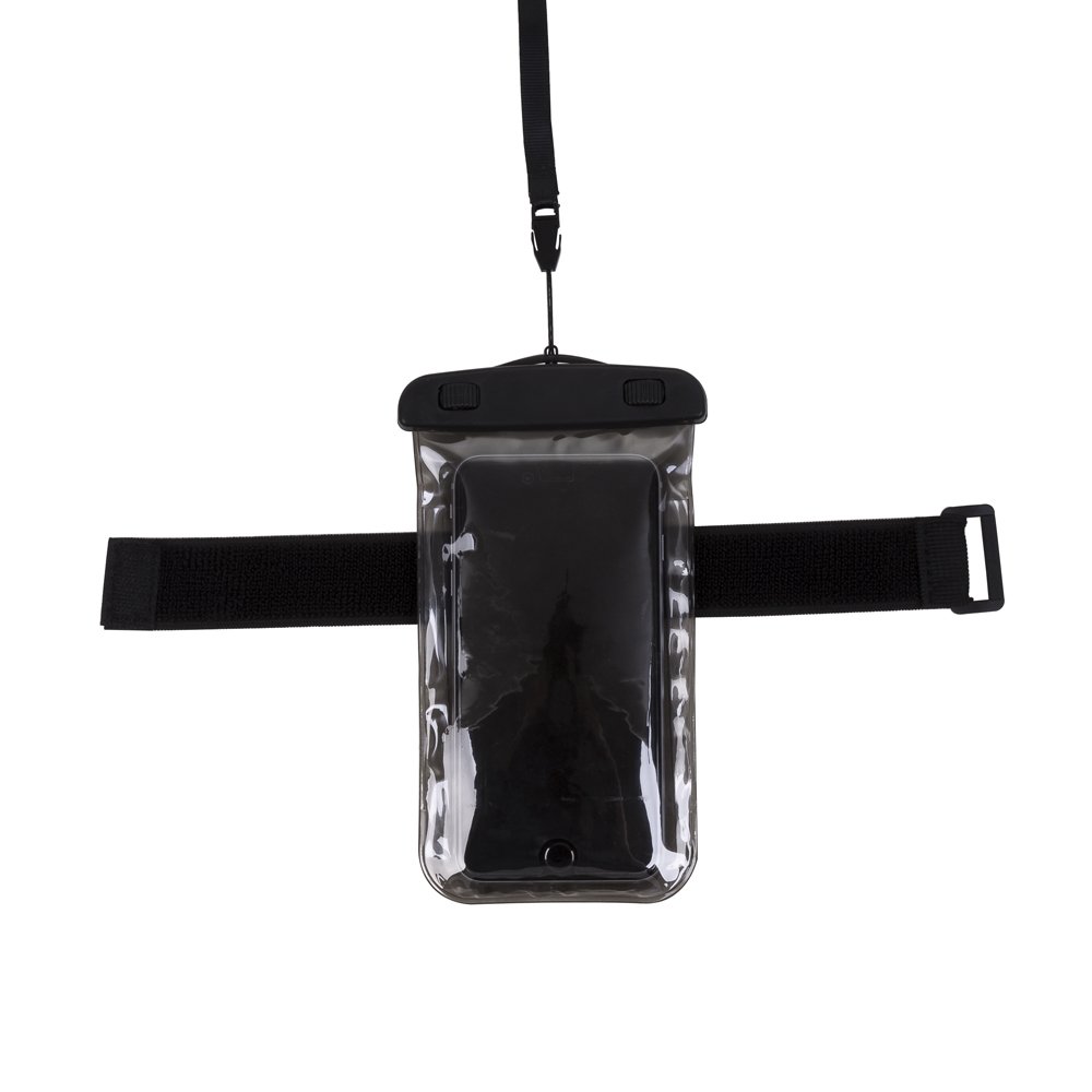 Case impermeável universal para smartphones com cordão de nylon de tamanho regulável.