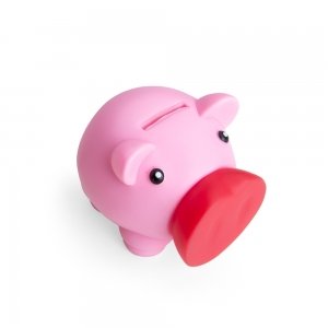 Cofre emborrachado em formato porquinho na cor rosa, focinho removível.