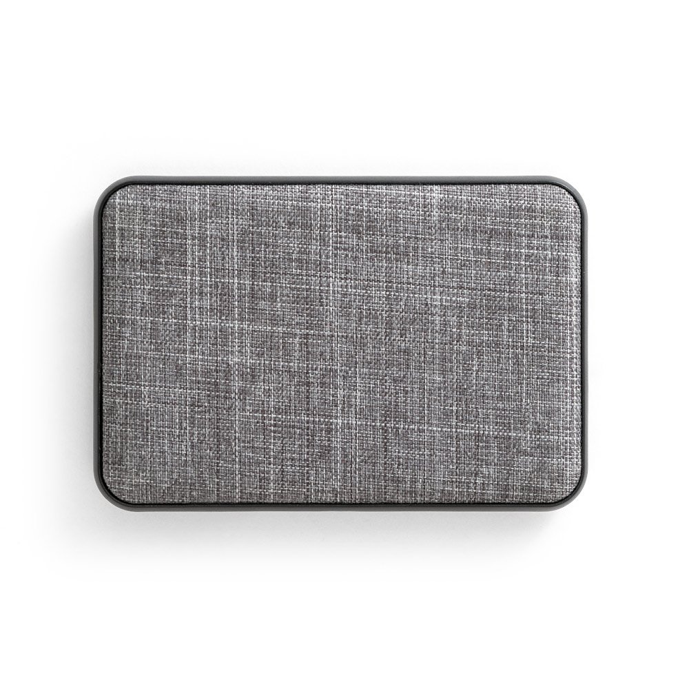 Bateria portátil em PET 100% reciclado (100% rPET). Bateria de lítio com capacidade de 5’000 mAh, uma porta de entrada microUSB, uma porta USB-C e duas portas USB-A de saída. Incluso cabo de carregamento microUSB. Fornecida em caixa presente de papel kraft. 65 x 98 x 10 mm