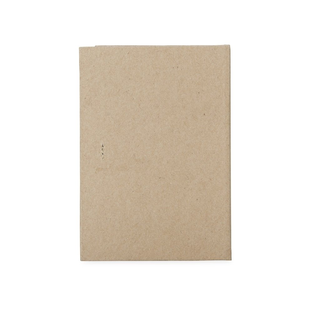Bloco de anotações capa dura em kraft com porta caneta e wire-o. Contém aproximadamente 100 páginas não pautadas na cor branca.