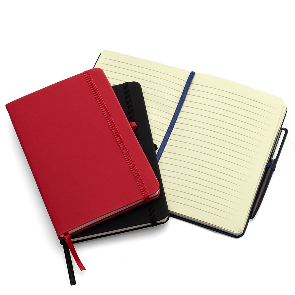 [vc_row][vc_column width=”2/3″]n[vc_column_text]Caderneta emborrachada tipo Moleskine com suporte de nylon para caneta, contém marcador de página em cetim e elástico para lacre. OBS.: PEDIDOS MÚLTIPLOS DE 5 PEÇAS!n