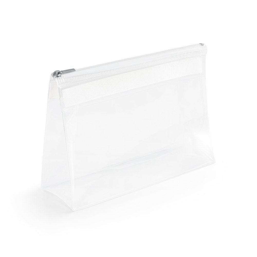 Bolsa de cosméticos em EVA com fecho de correr e puxador metálico. Apropriado para viagem de avião. 200 x 145 x 70 mm