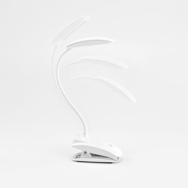 Luminária de Mesa Clip. ABS. LED COB. Com mola, braço flexível e botão tátil com 3 modos de luz (fraco, médio e forte). Autonomia até 20 horas. Incluso cabo USB. 115 x 55 x 380 mm