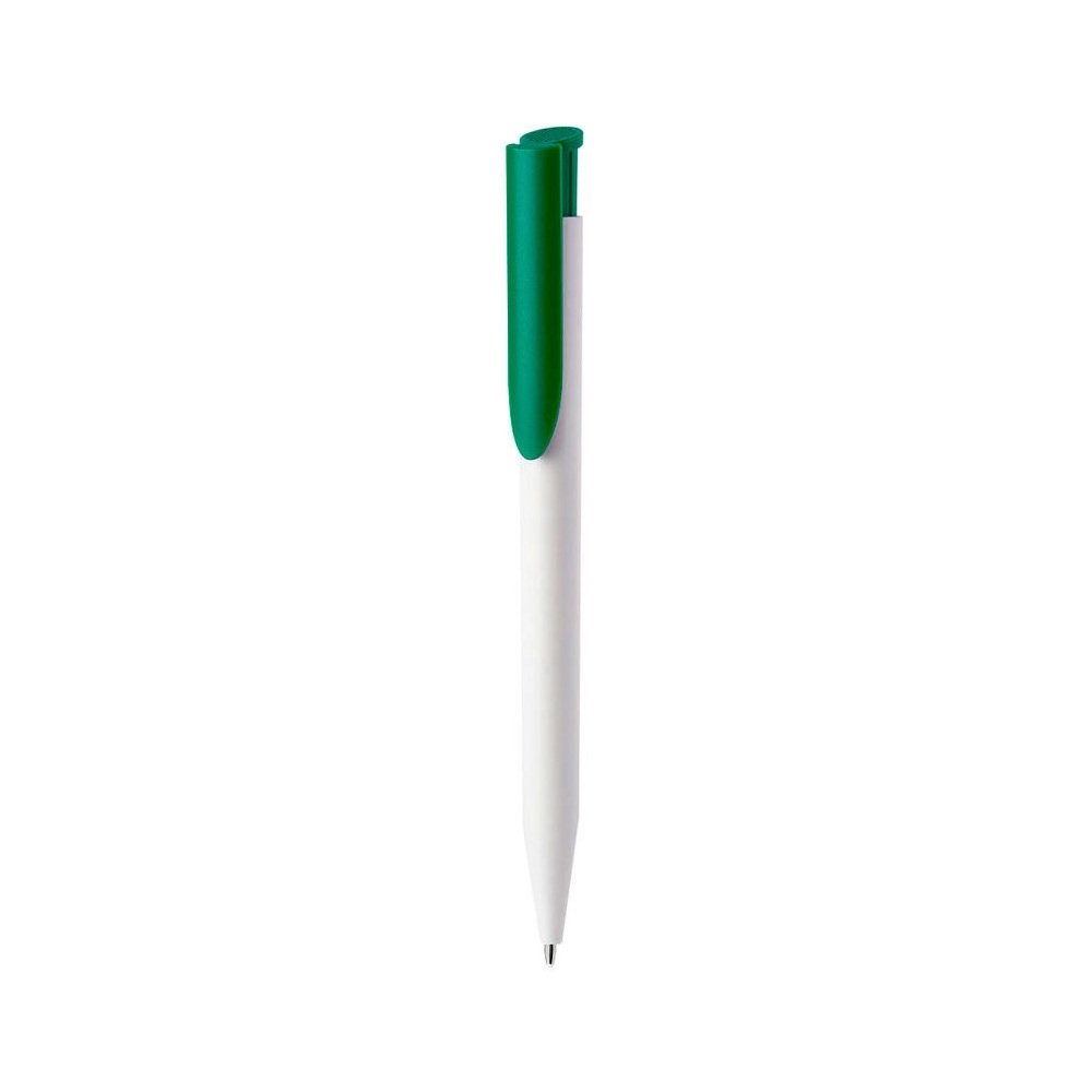 Caneta plástica com carga esferográfica azul 1.0mm e acionamento por clique.