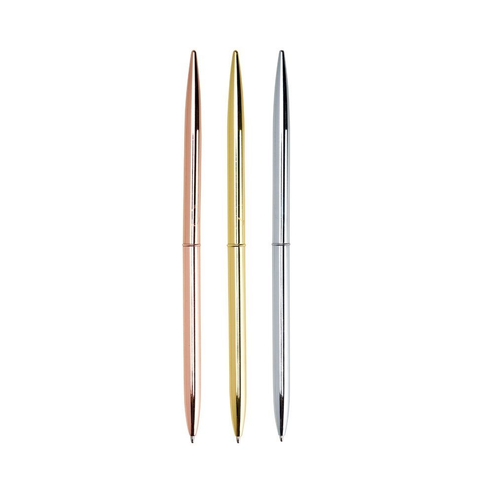 Caneta metálica com acionamento por rotação e carga esferográfica azul 1mm. Largura :  0,7 cm Comprimento :  16,3 cm Medidas aproximadas para gravação (CxL):  6,5 cm x 0,5 cm Peso aproximado (g):  10
