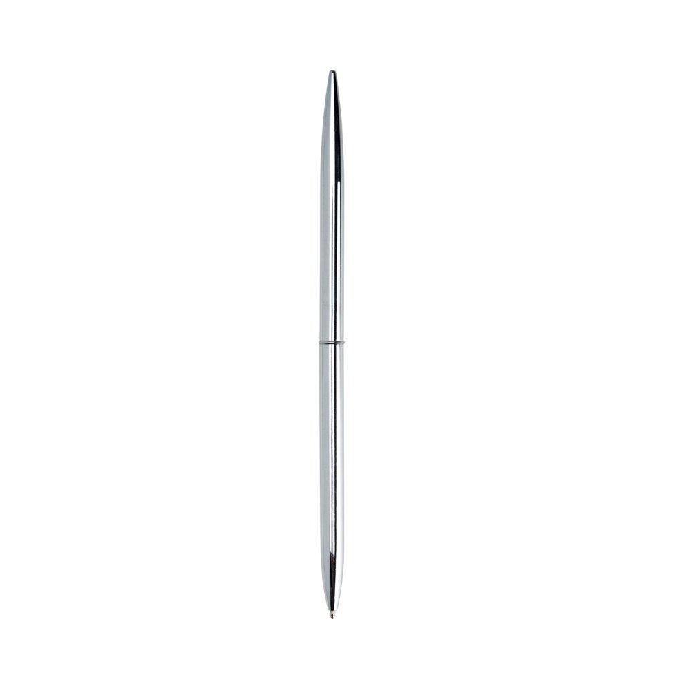 Caneta metálica com acionamento por rotação e carga esferográfica azul 1mm.