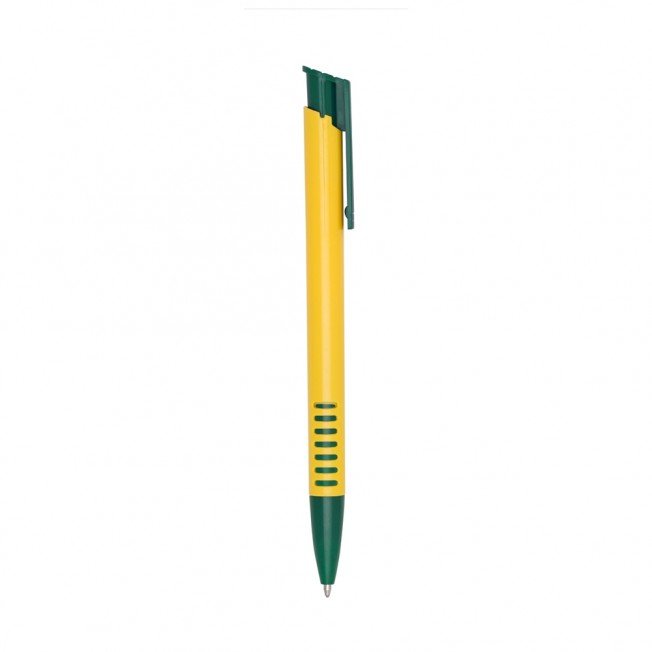 [vc_row][vc_column width=”2/3″]n[vc_column_text]Caneta plástica corpo amarelo com detalhes coloridos. Clip plástico colorido e parte inferior com sete linhas coloridas. Aciona por clique. n n n n n n Medidas aproximadas para gravação (CxL): 3 cm x 0,7 cmn Tamanho total aproximado (CxL): 13,8 cm x 1,2 cmn Peso aproximado (g): 6n