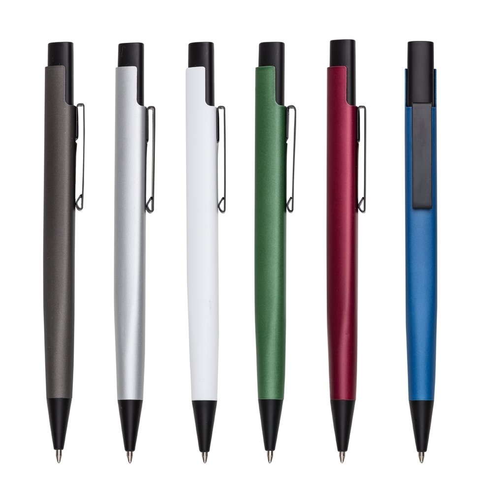 [vc_row][vc_column width=”2/3″]n[vc_column_text]Caneta triangular semimetal de pintura fosca com detalhes em preto. Possui clip metal com detalhe aberto na lateral. Aciona por clique. OBS.: PEDIDO APENAS MÚLTIPLO DE 50 PEÇAS! n n n n n n Medidas aproximadas para gravação (CxL): Clip 3,3 cm x 0,5 cm – 4 cm x 0,8 cmn Tamanho total aproximado (CxL): 14,4 cm x 1,5 cmn Peso aproximado (g): 21n