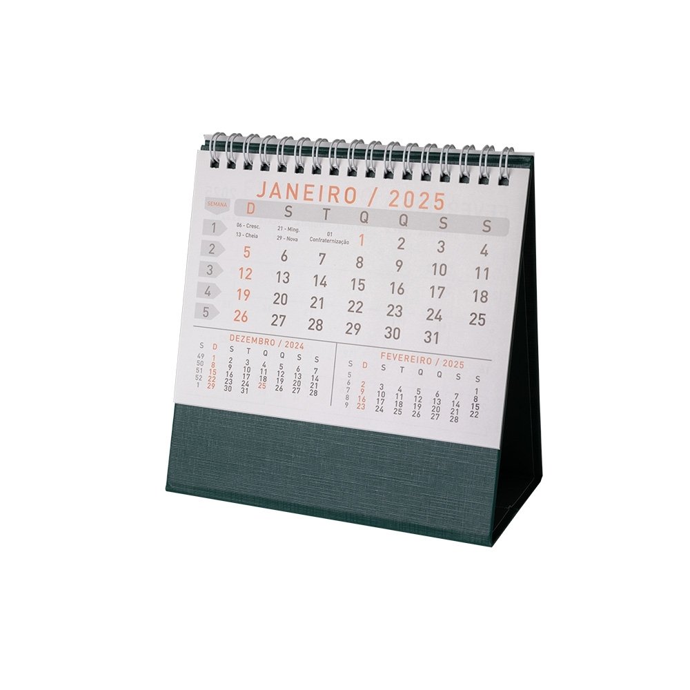 Calendário de mesa 2025 em papel couche 115g, base percalux.