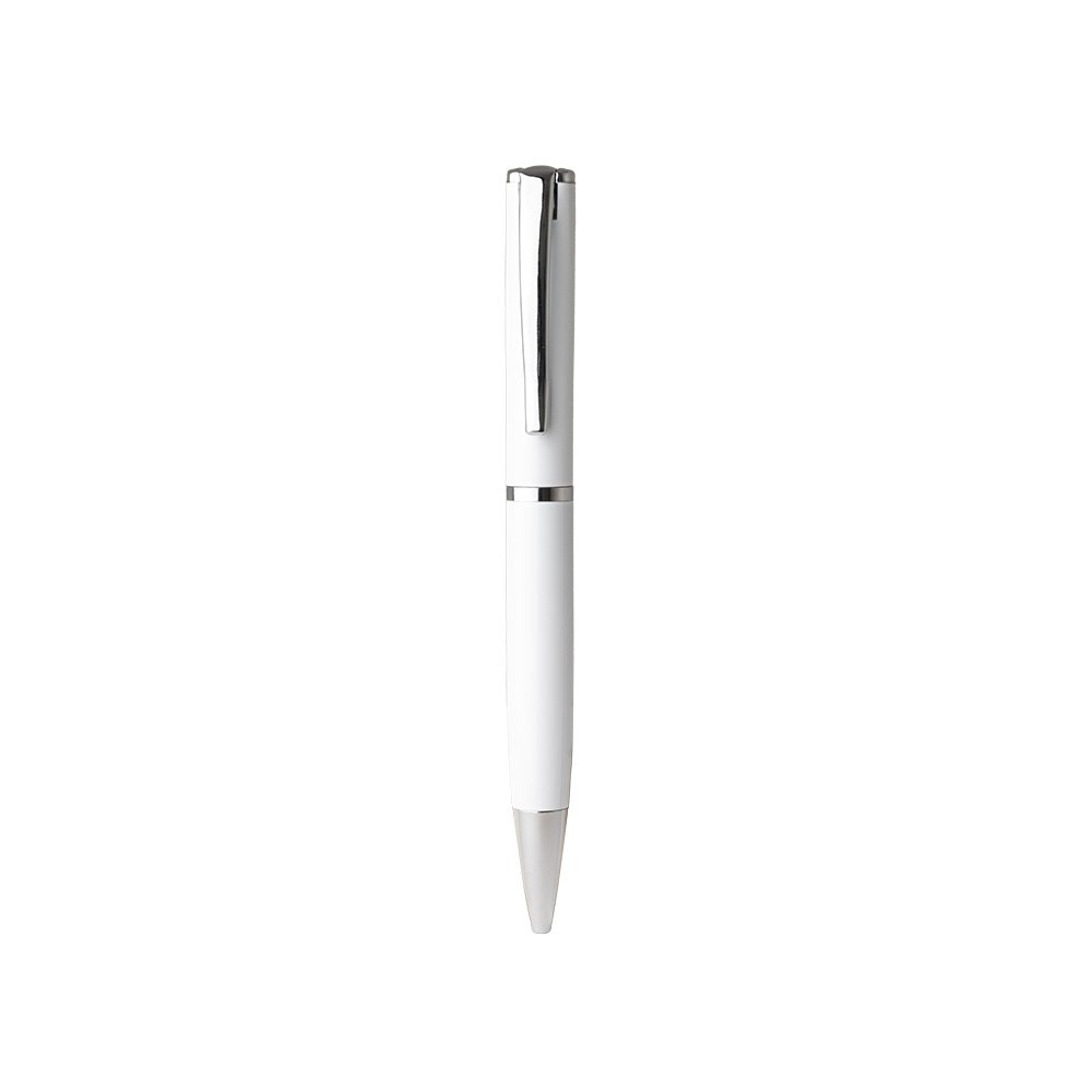 Caneta metálica com carga esferográfica azul 1.0mm e acionamento por rotação. Altura :  14,3 cm Largura :  1,6 cm Medidas aproximadas para gravação (CxL):  0,4 cm x 3 cm Peso aproximado (g):  33