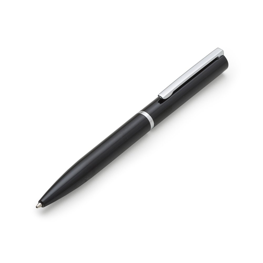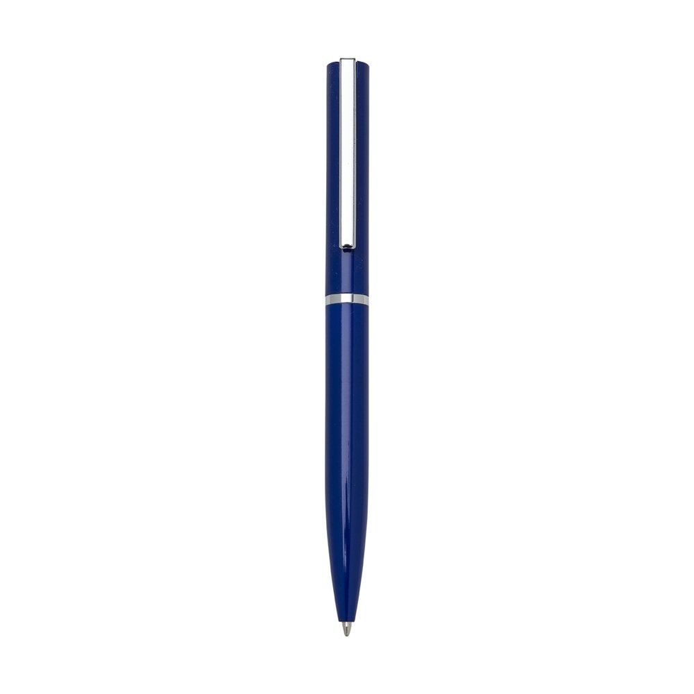 Caneta semimetálica com carga esferográfica azul e acionamento por rotação. OBS.: PEDIDO APENAS MÚLTIPLO DE 50 PEÇAS!