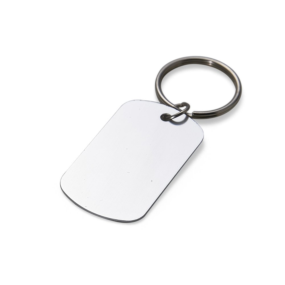 Chaveiro plaquinha metálica. Formato retangular com bordas arredondadas de frente e verso liso, pintura fosca.