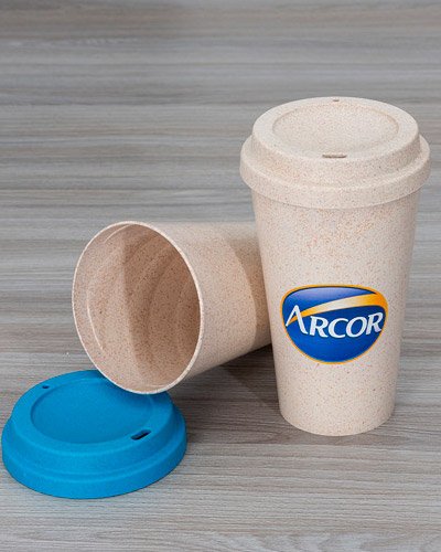 Copo Ecológico para Brindes : Copo ecológico para brindes. Possui tampa feita em material de fibra de arroz, capacidade de 550 ml e boa área de personalização. Produto amigo do meio ambiente, o copo possui ótimo custo e conta com boa variação de coresLer Dúvidas Sobre o Produto