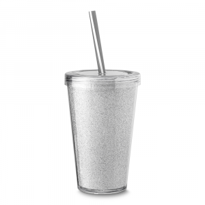 [vc_row][vc_column width=”2/3″]n[vc_column_text]Copo plástico parede dupla 550ml, possuinpersonalização interna de EVA com glitter,ncanudo bicolor biodegradável.n