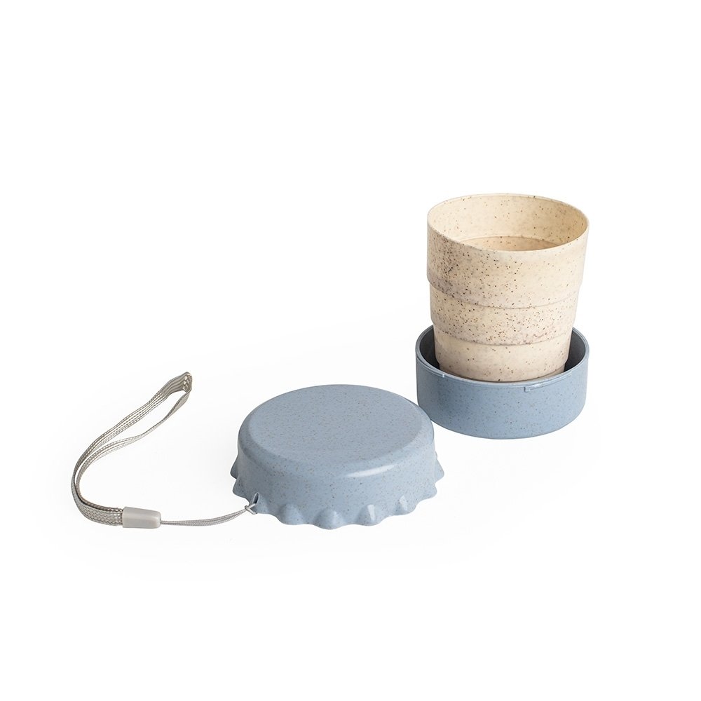 Copo retrátil em palha de trigo de 125ml. Acompanha alça de nylon.