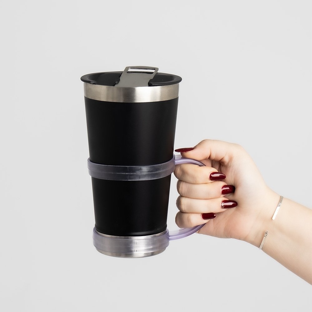 Alça feita de silicone, maleável e ideal para usar no copo que for consumir suas bebidas em qualquer ocasião.