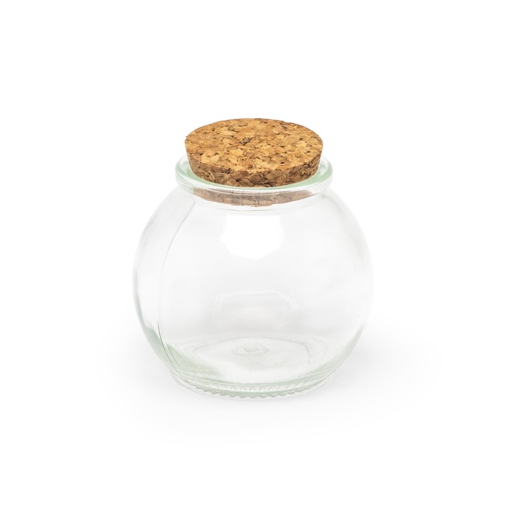 Frasco de vidro com capacidade de 100ml, tampa de cortiça. Altura :  7 cm Largura :  6,9 cm Circunferência :  22 cm Medidas aproximadas para gravação (CxL):  2,5 cm x 2,5 cm Peso aproximado (g):  90