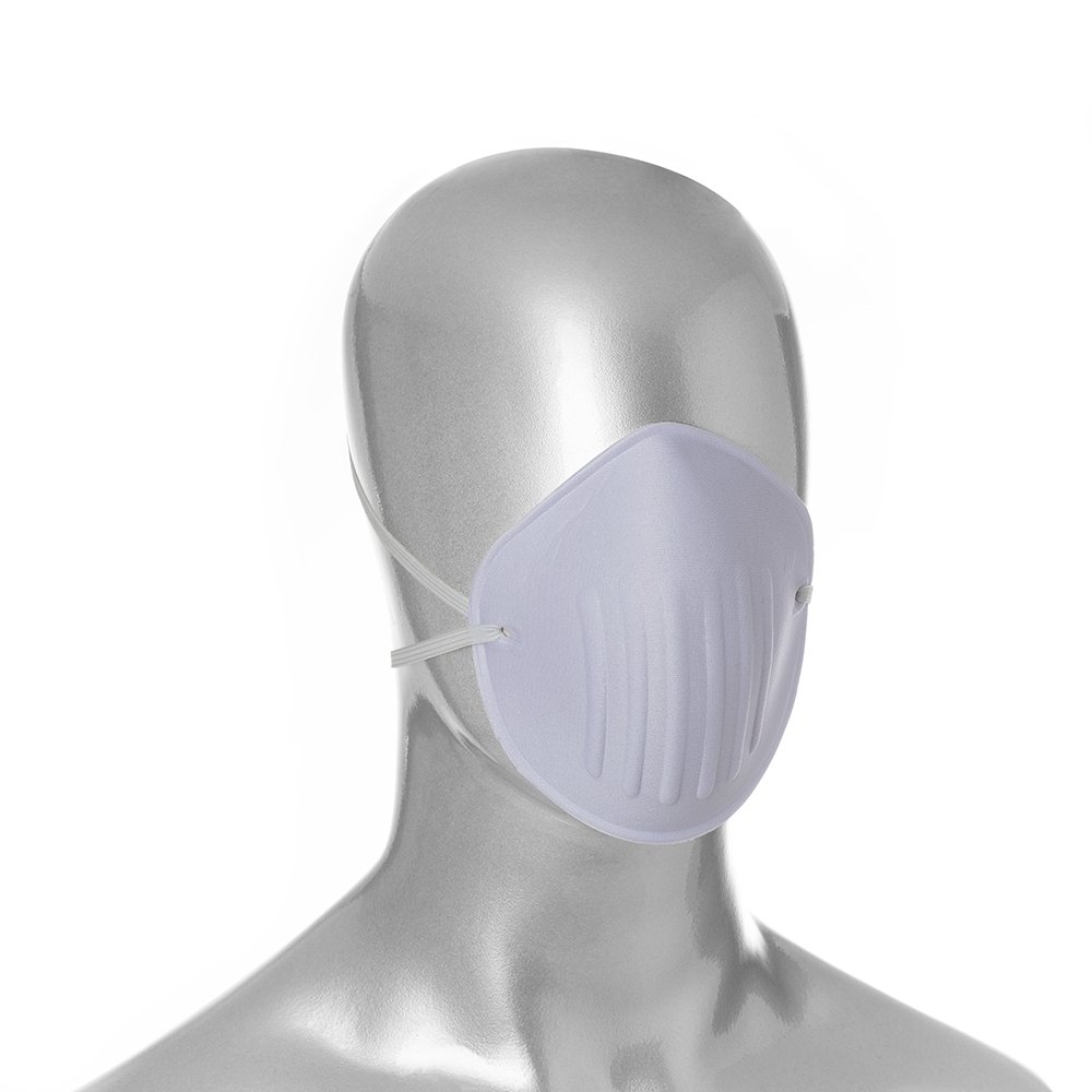 Máscara anatômica reutilizável: Produzida em duas camadas de microfibra sintética e uma camada filtrante, acompanha elástico látex ajustável de 95 cm de comprimento. Máscara enquadrada na Classe I, isenta de CBPF conforme disposto na RDC Art. 24, produto em conformidade com INMETRO 102.
