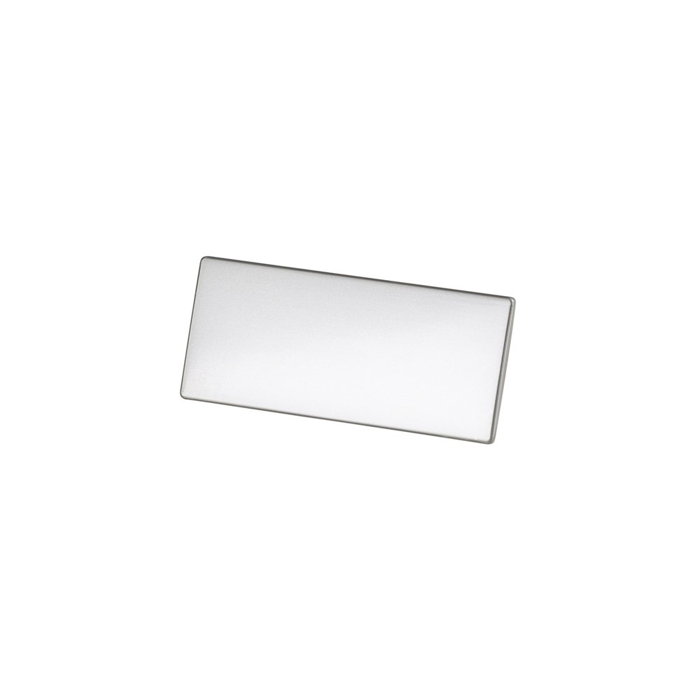 Plaquinha metálica para personalização. Possui acabamento fosco, hastes sem ponta na parte traseira, para fixação fure o tecido, encaixe e dobre as hastes. Altura :  2 cm Comprimento :  4,5 cm Medidas aproximadas para gravação (CxL):  4,3 cm x 1,8 cm Peso aproximado (g):  8