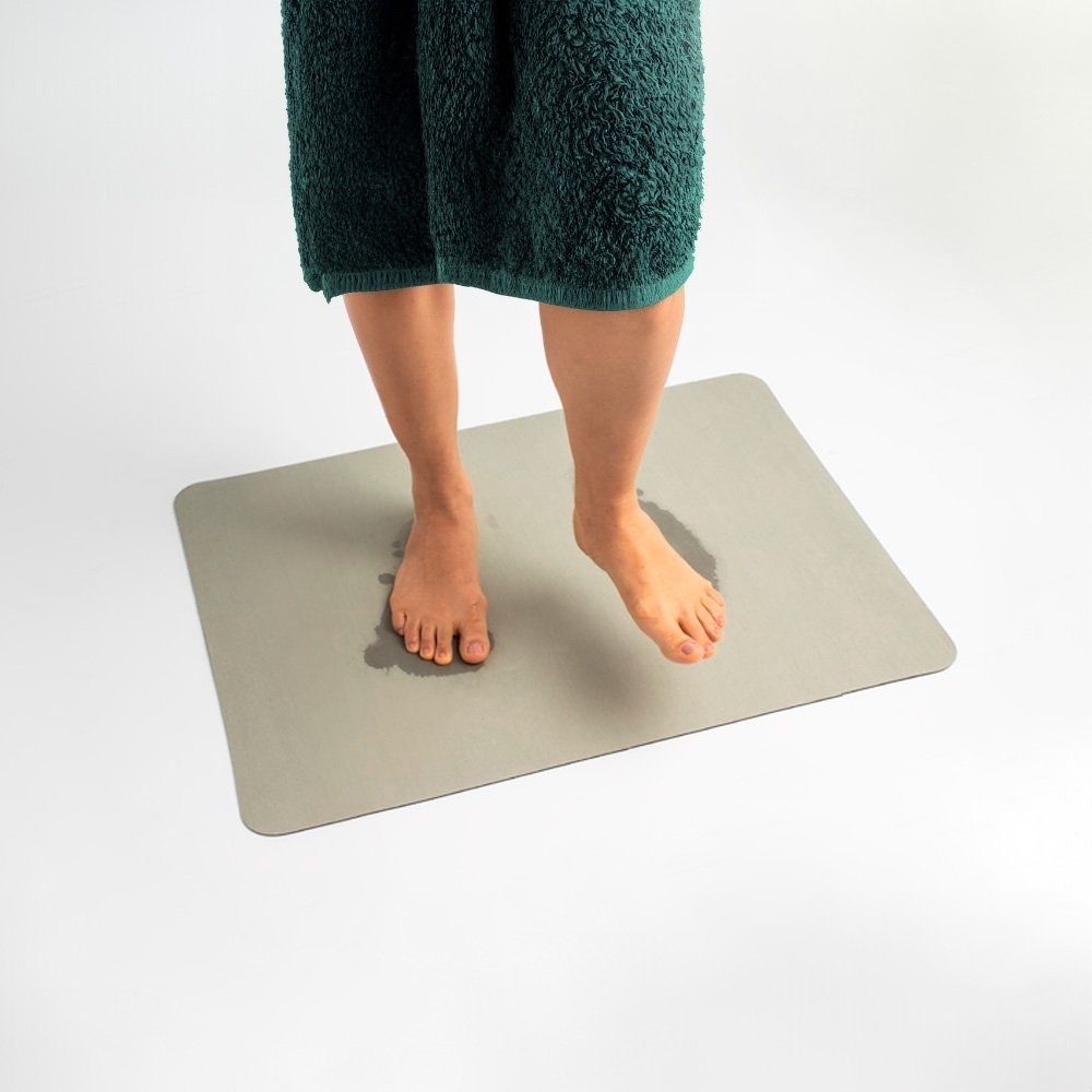 Secagem rápida e aderência antiderrapante! Nosso tapete ecológico é a solução ideal para acabar com o piso molhado após o banho. Feito com lama de diatomáceas, ele absorve rapidamente a água e retorna ao seu estado natural em poucos minutos. Produzido com materiais naturais, o tapete oferece propriedades antibacterianas e antimofo, além de uma base antiderrapante que garante total segurança no uso.