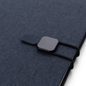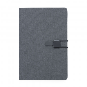 [vc_row][vc_column width=”2/3″]n[vc_column_text]Caderno de anotações com elástico,ncapa dura em tecido poliéster,nmiolo 80 folhas pautadas na cor bege.n