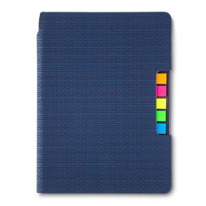 Caderno de anotações, com sticky notes,ncapa em material Sintético,nmiolo 80 folhas pautadas na cor bege.as compras a partir de 30 peças, seguirá como cortesia lapiseiras de sua escolha para compor os kits.