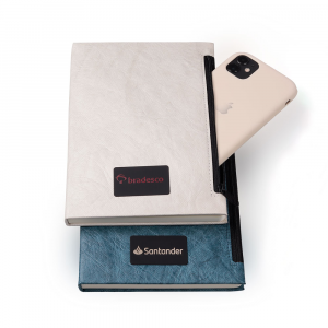 [vc_row][vc_column width=”2/3″]n[vc_column_text]Caderno de anotações com porta objetos na capa, capa dura em material sintetico, miolo 80 folhas pautadas na cor bege.nACOMPANHA PLACA DE METAL PRETA DE 3cm X 5cm PARA PERSONALIZAÇÃO.as compras a partir de 20 peças, seguirá como cortesia lapiseiras de sua escolha e personalização gratuita de suas respectivas placas, sendo os tipos de gravação aceitos: UV digital ou laser. Consulte-nosn