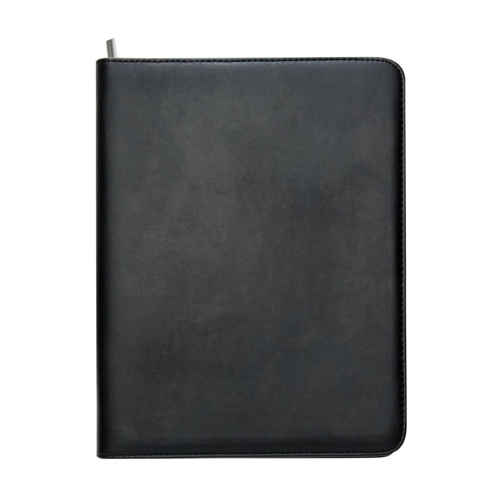 Pasta convenção de couro sintético com zíper, possui 2 compartimentos grandes para arquivar documentos, compartimento interno com zíper, 7 divisórias pequenas para documentos, suporte com visor para cartão de identificação, suporte para caneta(não acompanha caneta) e bloco com 20 folhas pautadas.