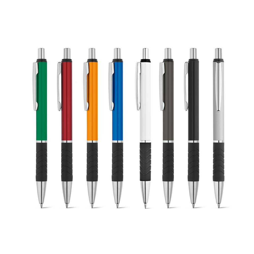 Esferográfica em alumínio com clipe de metal e antideslizante. Até 1.5 km de escrita. Escrita em azul. ø10 x 136 mm