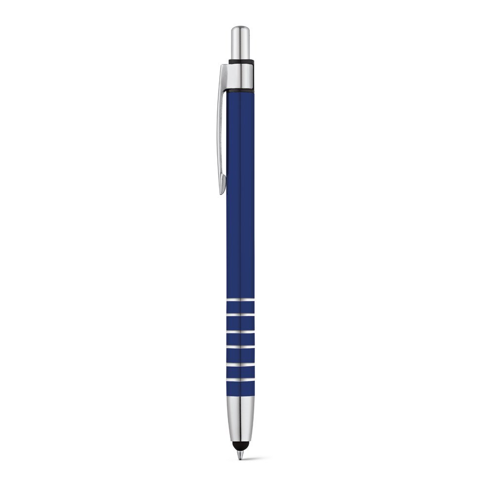 Esferográfica em alumínio com ponteira touch e clipe de metal. Escrita em azul até 1.5 km. ø9 x 138 mm