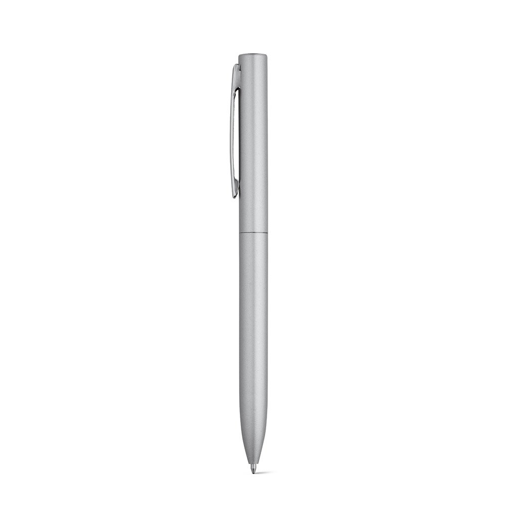 Esferográfica em alumínio com clipe em ferro com cromagem brilhante. A esferográfica tem mecanismo twist e escrita em azul até 1.5 km. Fornecido com estojo presente desmontado. ø10 x 138 mm | Caixa: 175 x 41 x 20 mm