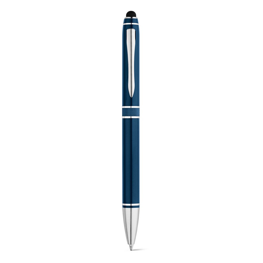 Esferográfica em alumínio com clipe de metal. A esferográfica tem mecanismo twist, ponteira touch e escrita em azul até 2 km. Fornecida embalagem presente de veludo. ø11 x 138 mm | Embalagem de veludo: 160 x 30 mm
