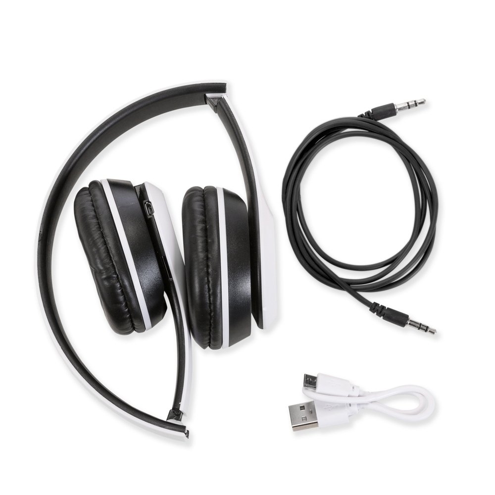 Fone de ouvido bluetooth com pintura fosca e rádio FM. Material articulável plástico com hastes de altura regulável e protetor de couro sintético com espuma interna. Botão superior Liga/Desliga: basta segurá-lo para ligar ou desligar; Botão esquerdo << - : ao pressioná-lo irá retroceder a faixa ou estação, ao segurar irá diminuir o volume; Botão direito >> + : ao pressioná-lo irá avançar a faixa ou estação, ao segurar irá aumentar o volume; Botão inferior Modo: ao pressioná-lo alterna entre os modos bluetooth e rádio; Botão central >|| Play/Chamadas: ao pressionar este botão irá iniciar ou pausar uma faixa, no modo rádio pressione para começar a sintonização automática. Quando estiver conectado e receber uma chamada, ao pressioná-lo irá atender a chamada, ao segurá-lo irá recusar a chamada ou pressionando duas vezes irá rediscar. Possui microfone embutido e entrada AUX/P2 e entrada para cartão microSD. Acompanha cabo USB e cabo auxiliar P2(pode ser conectado no computador e aparelhos de aúdio).