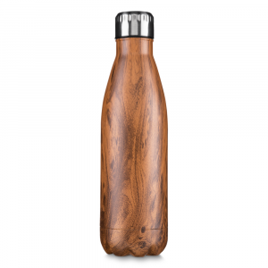 Garrafa aço inoxidavel 750 ml textura imitação madeira.