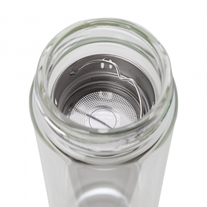[vc_row][vc_column width=”2/3″]n[vc_column_text]Garrafa de vidro borossilicato parede dupla 360 ml com infusor, tampa de bambu com alça tipo corda, conserva a temperatura quente e frio, até 320°C.n