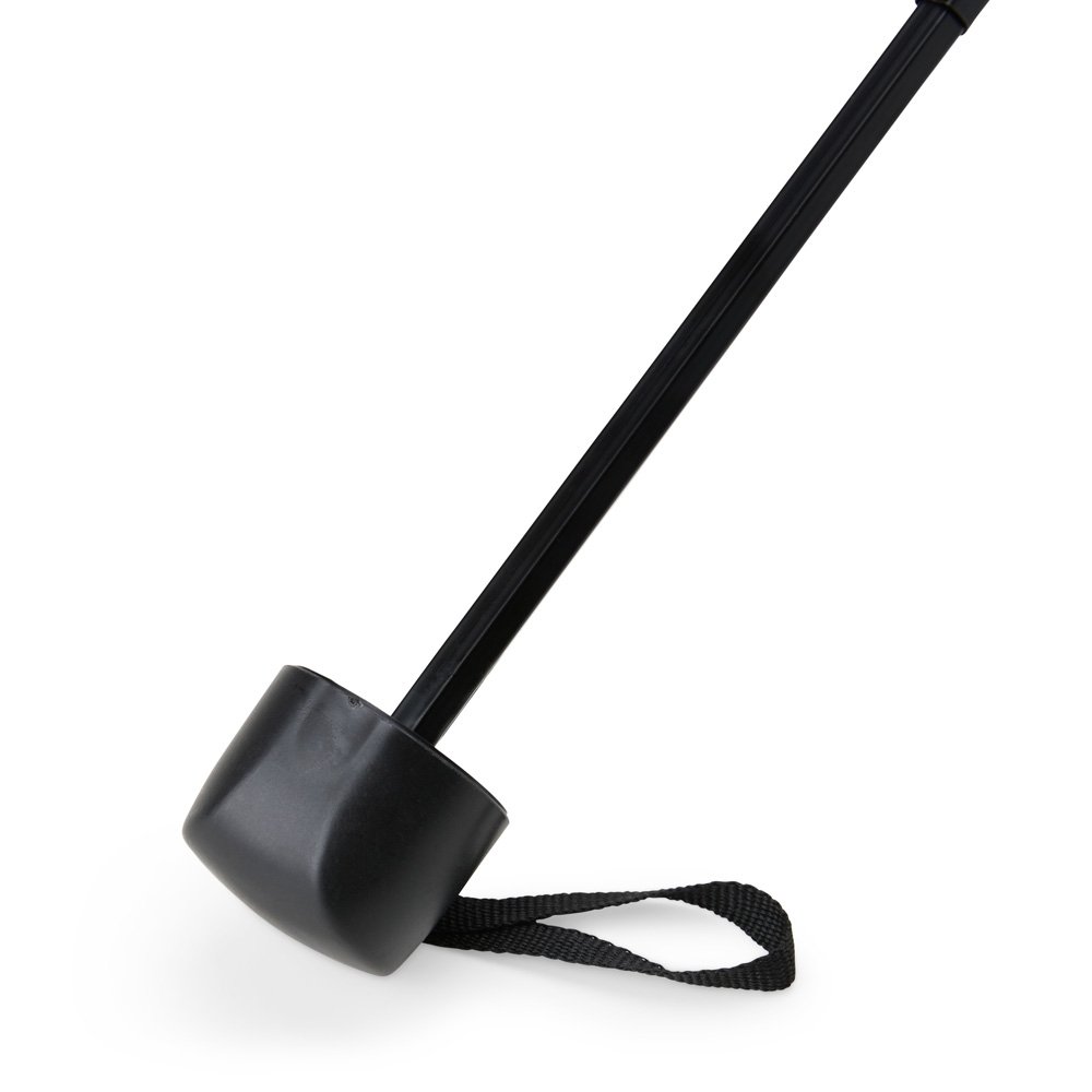 Guarda-chuva manual de tecido em nylon. Possui 8 varetas e estrutura em aço, pegador, botão de abertura e alça de nylon. Acompanha capa protetora.