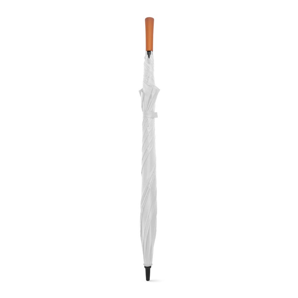 Guarda-chuva de grande portaria em poliéster pongee 190T, com varetas e haste em fibra de vidro e pega em madeira. ø1375 x 855 mm