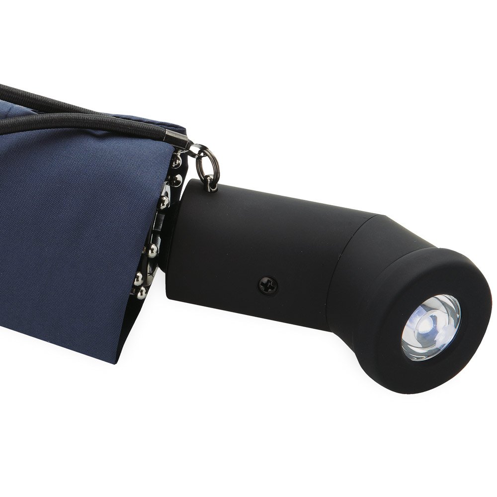 Guarda-chuva em poliéster dobrável em 3 seções com lanterna na pega (incluso 2 pilhas CR2032). Fornecido em bolsa. ø940 x 310 mm | Bolsa: ø50 x 230 mm