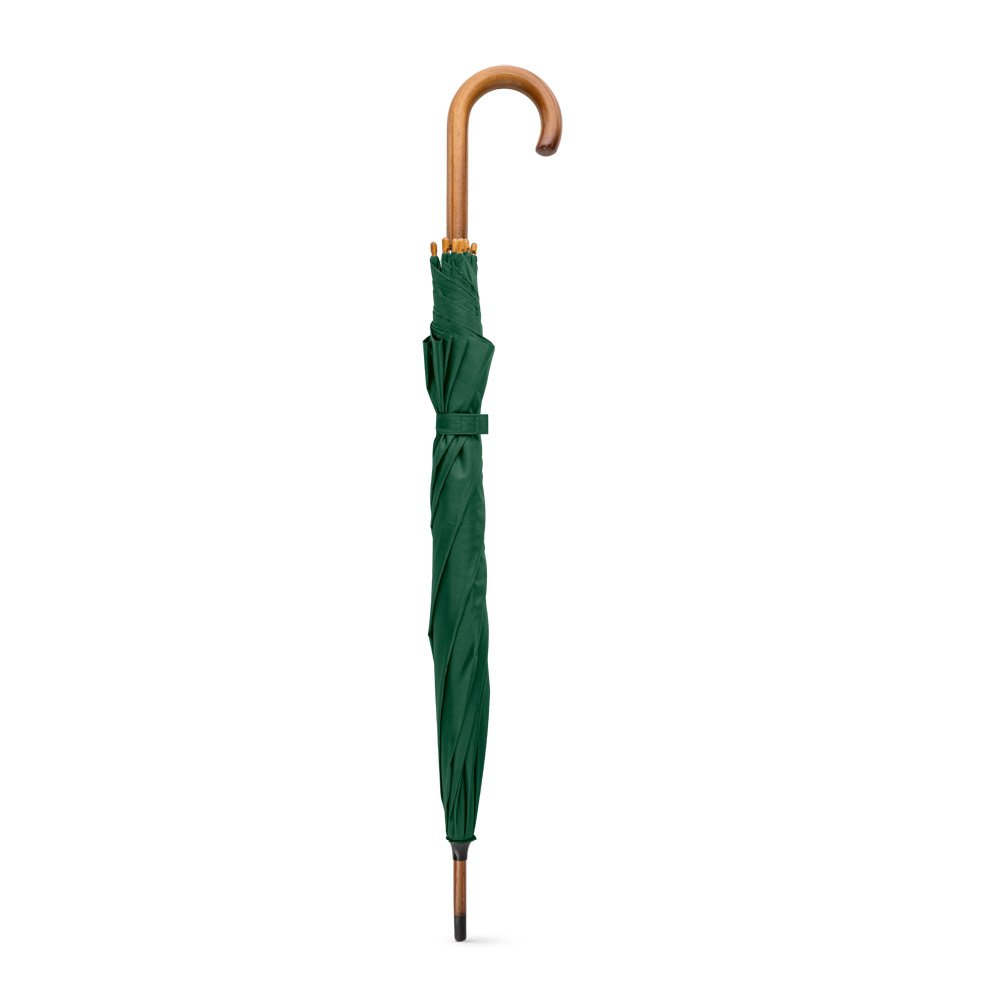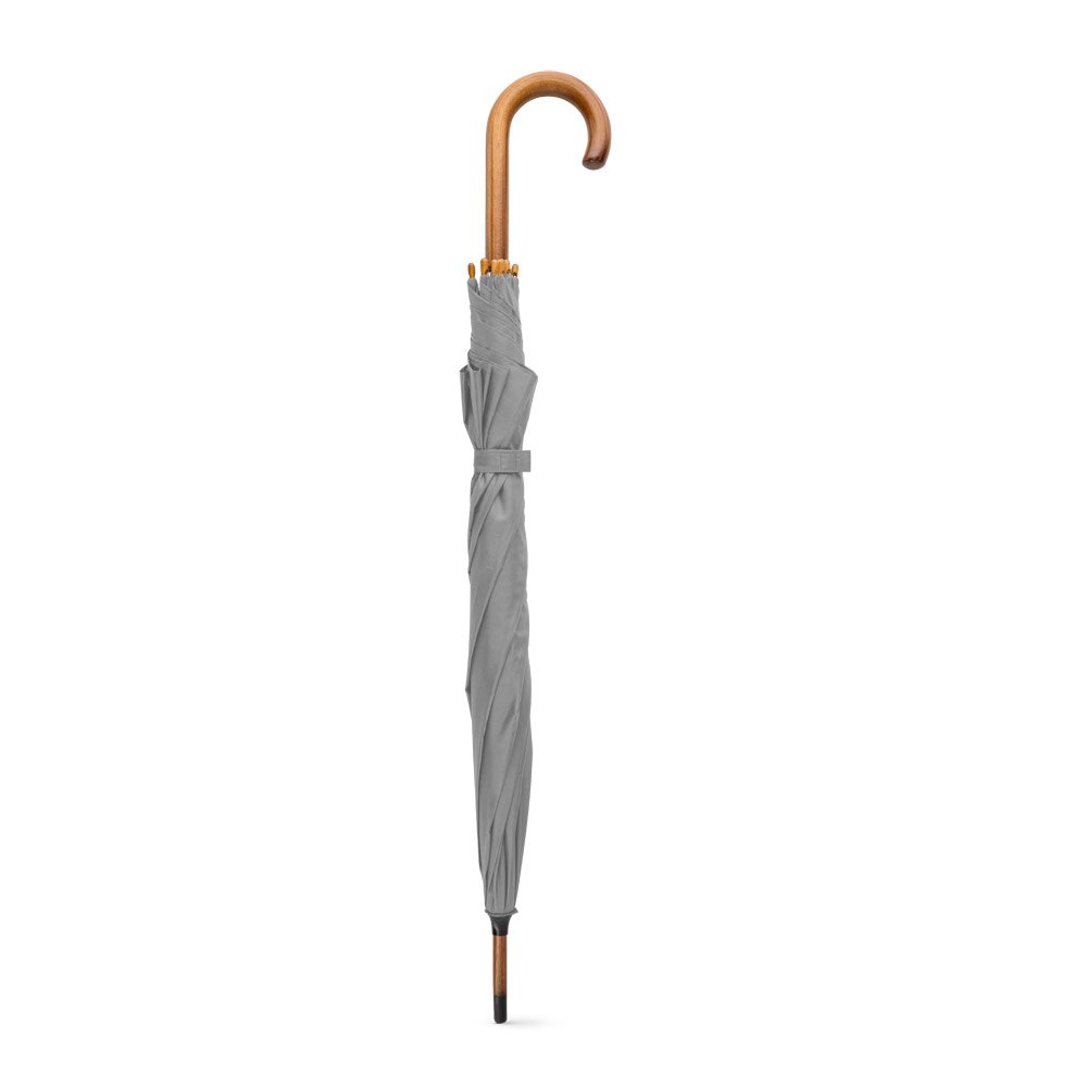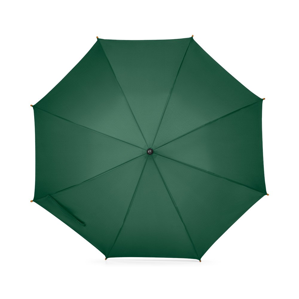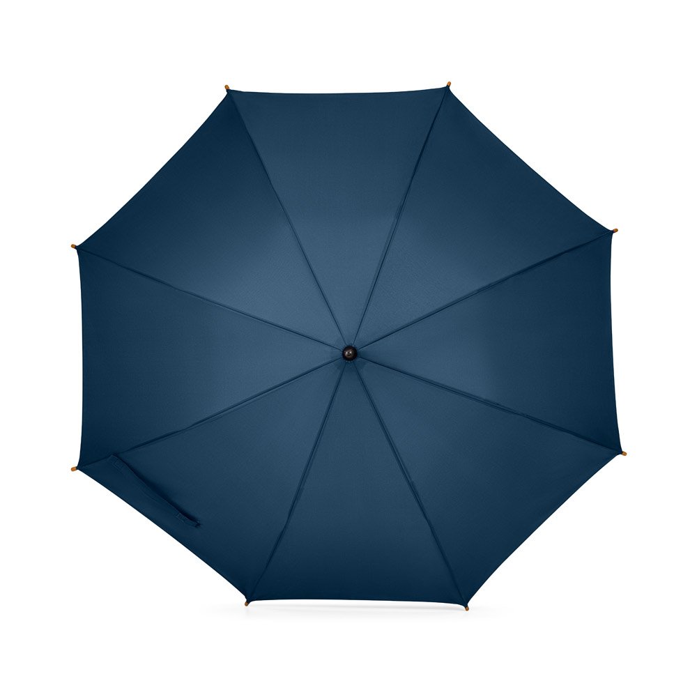 Guarda-chuva em poliéster pongee 190T, com varetas em fibra de vidro, pega e haste em madeira. O guarda-chuva tem abertura automática. ø1040 x 885 mm