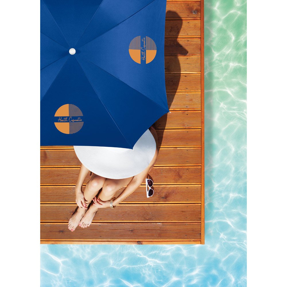 Guarda-sol em poliéster 300D com interior prateado e cabo direcionável. Fornecido em bolsa