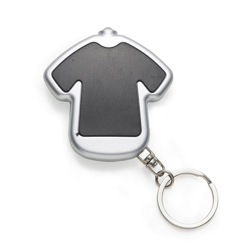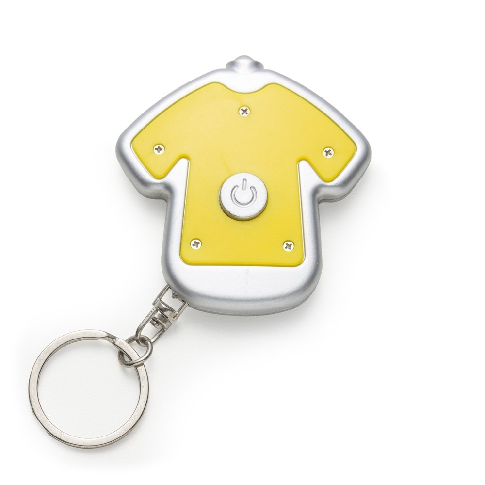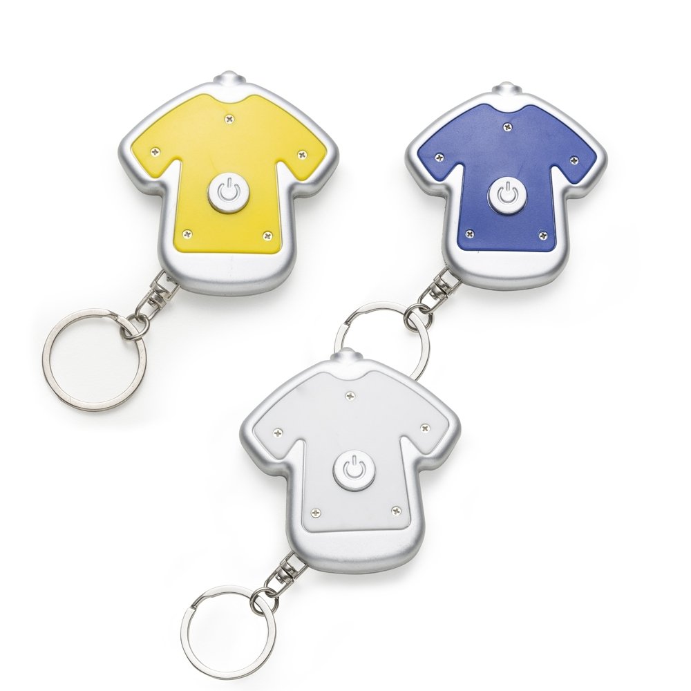 [vc_row][vc_column width=”2/3″]n[vc_column_text]Chaveiro lanterna plástico formato camiseta colorida com contorno prata. Frente lisa e verso com parafusos e botão para acender lanterna. Acompanha duas baterias(CR1220 e L1130). n n n n n n Medidas aproximadas para gravação (CxL): 3,8 cm x 4,5 cmn Tamanho total aproximado (CxL): 5,6 cm x 5,4 cmn Peso aproximado (g): 14n