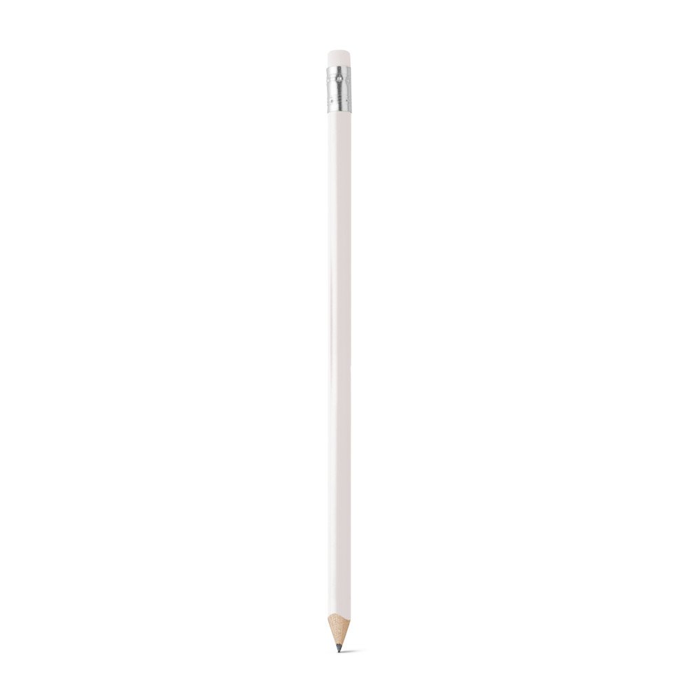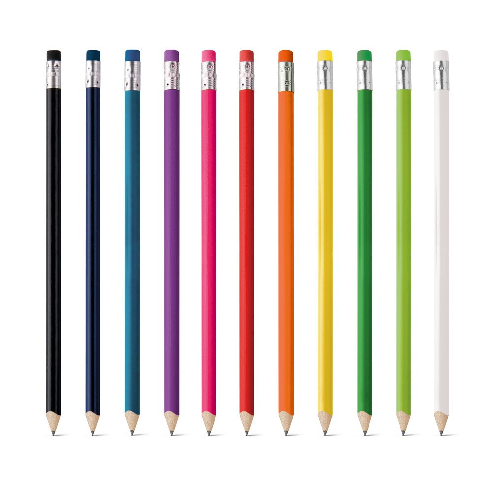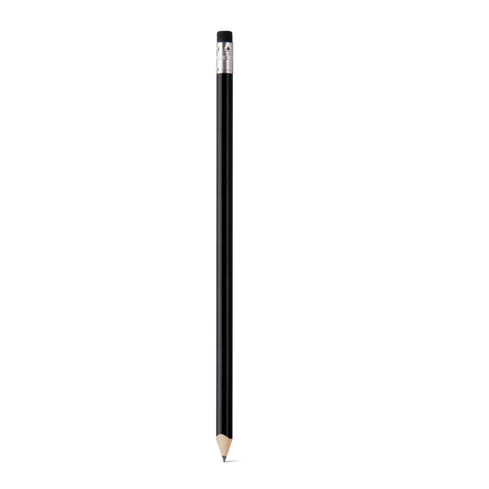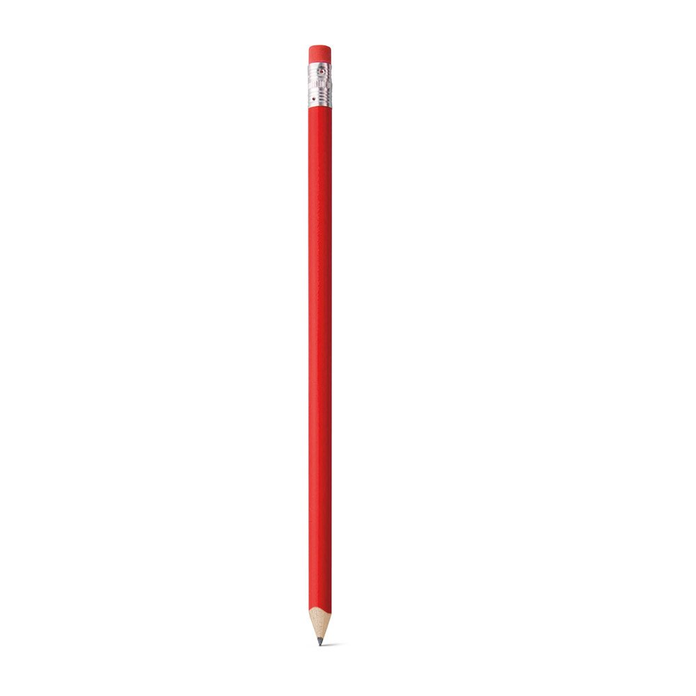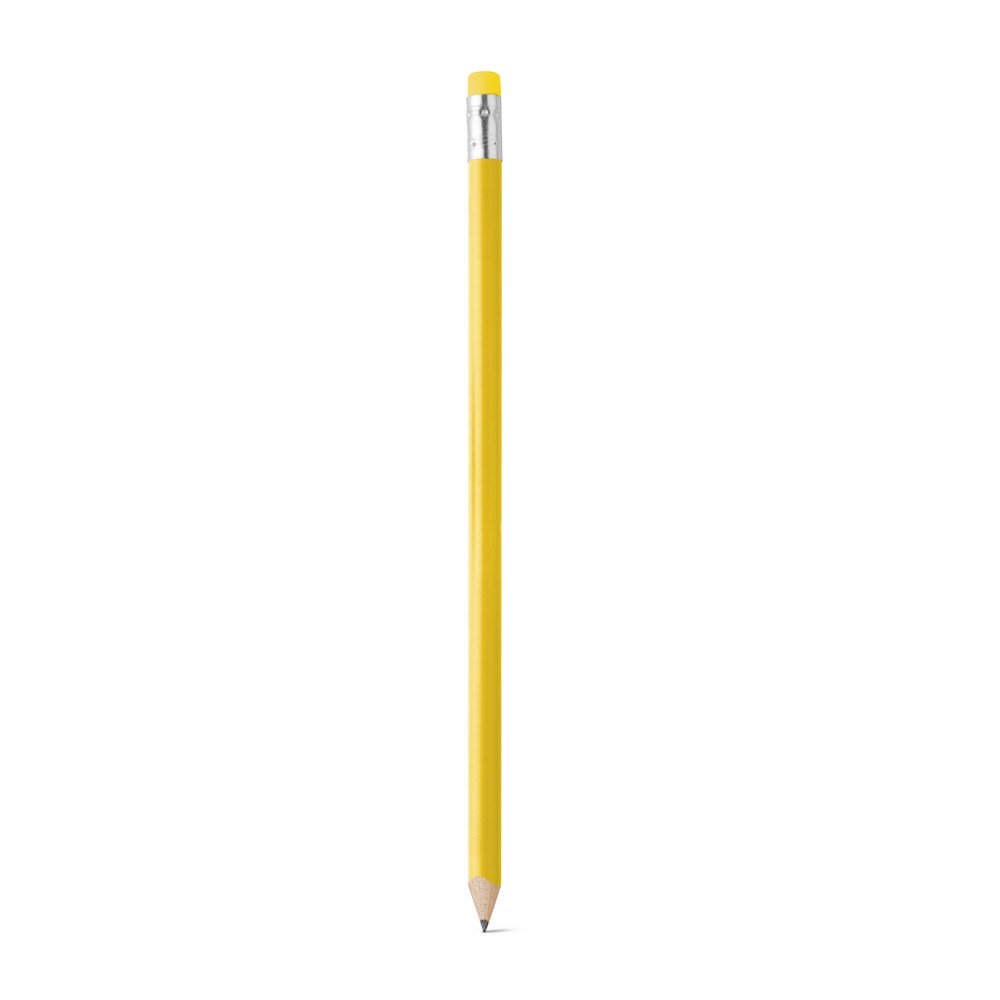 Lápis apontado com borracha. Grau de dureza: HB. Produto certificado de acordo com a portaria Inmetro nº423 de 8/out/2021 e entregue já apontado. ø7 x 190 mm