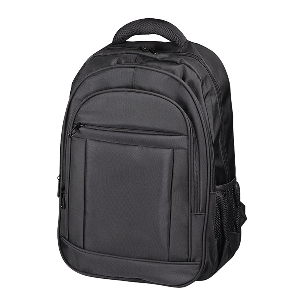Mochila confeccionada em poliéster com compartimento para notebook. Contém compartimento grande com bolso para notebook até 17 polegadas, compartimento mediano com zíper, compartimento pequeno com zíper bolso frontal com zíper, alça de mão, alça superior em nylon, alças de ombro e costas acolchoada com revestimento antitranspirante e bolsos laterais telados.