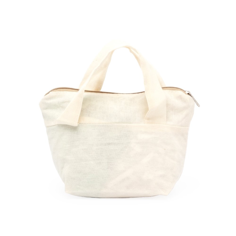 Nécessaire de algodão com zíper, alças e frente e verso lisos.