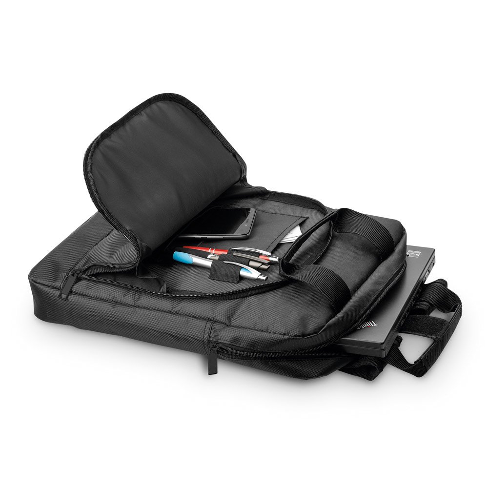 Mochila para notebook em 840D. Compartimento com divisória almofadada para computador até 15" e bolso frontal de zíper com vários bolsos interiores. Parte posterior com banda para transporte em trolley. Capacidade até 6 L
