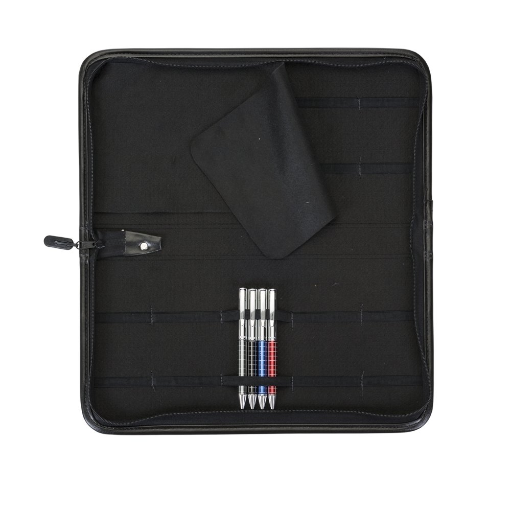 [vc_row][vc_column width=”2/3″]n[vc_column_text]Pasta mostruário para canetas, material em couro sintético com zíper( “pegador” emborrachado). Cabém aproximadamente 50 unidades de caneta, parte interna de veludo, possui dois elásticos por encaixe para fixar parte inferior e superior melhor, além de um pano protetor para as peças não riscarem ao terem contato umas às outras ao fechar a pasta. n n n n n n Medidas aproximadas para gravação (CxL): 37,2 cm x 17,5 cmn Tamanho total aproximado (CxL): 39,3 cm x 20 cmn Peso aproximado (g): 408n