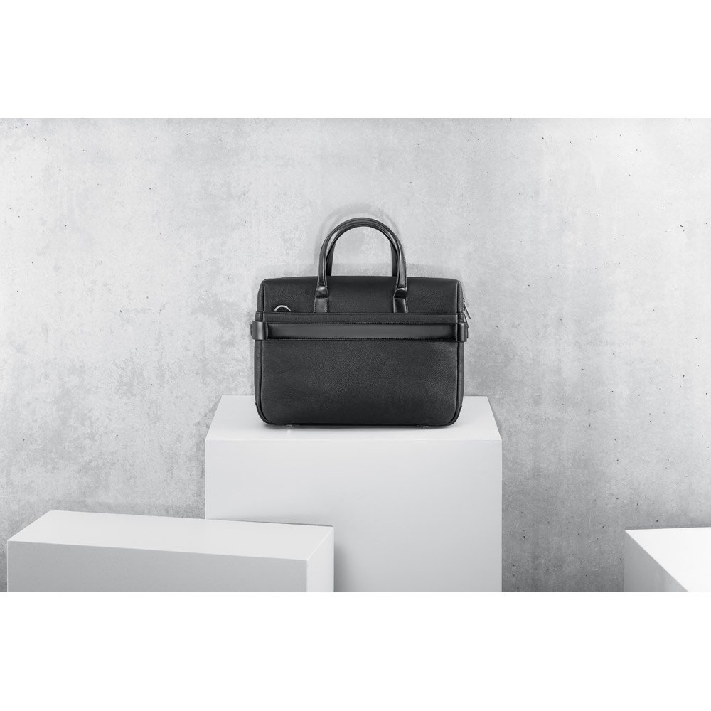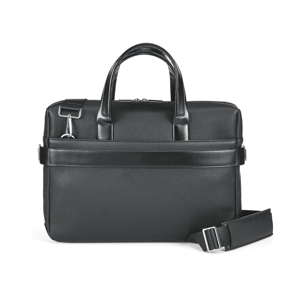 A Empire II é uma pasta clássica e sofisticada, que contém dois bolsos idealizados para proteger o seu notebook até 15’6” e o seu tablet até 10’5”. O seu design, tal como todos os produtos desta linha, foi pensado ao mais ínfimo pormenor e todos os detalhes fazem com que a pasta Empire II seja o objeto ideal para o dia-a-dia, que não passa despercebido. O acabamento da Empire II é em c. sintético texturado de alta qualidade. A versatilidade que se denota nas diferentes formas de transporte, é igualmente percetível no seu encaixe para trolley. Fornecida em sacola de TNT. EMPIRE SUITCASE II: 380 x 280 x 80 mm | Sacola em TNT: 500 x 500 x 80 mm