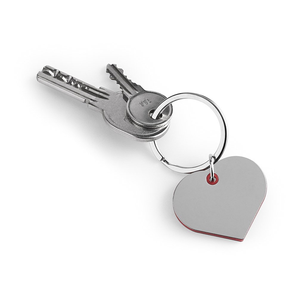 Chaveiro em formato de coração em metal e ABS. Fornecido em bolsa presente de papel kraft reciclado. 42 x 34 x 4 mm