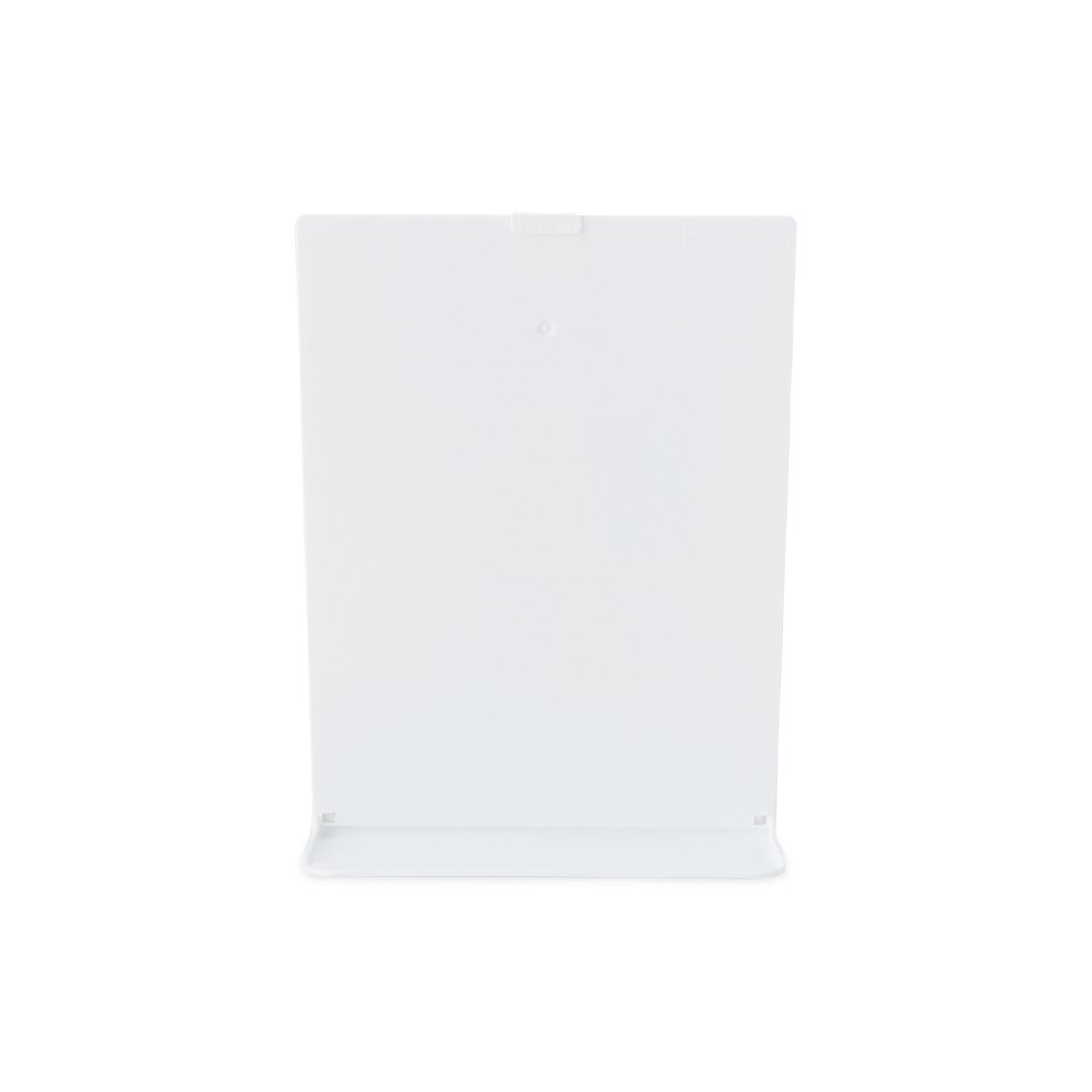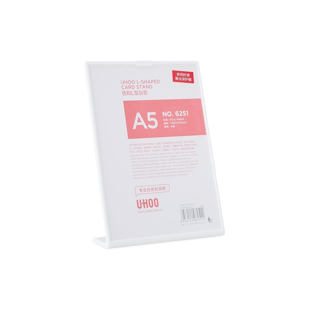 Expositor porta retrato A5 feito em poliestireno com placa acrílica.