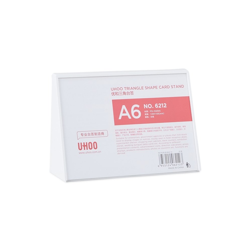 Expositor porta retrato A6 feito em poliestireno com placa acrílica.